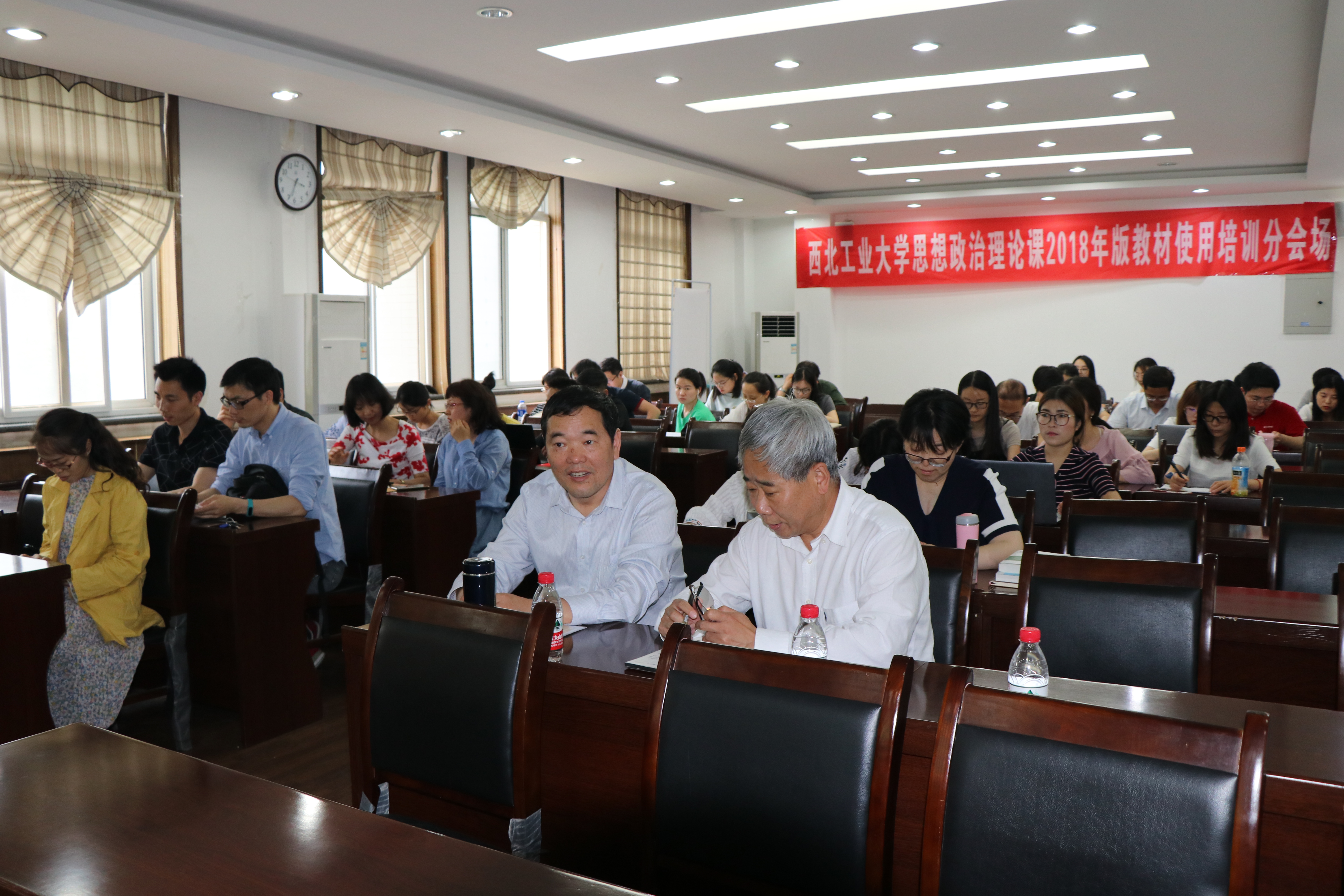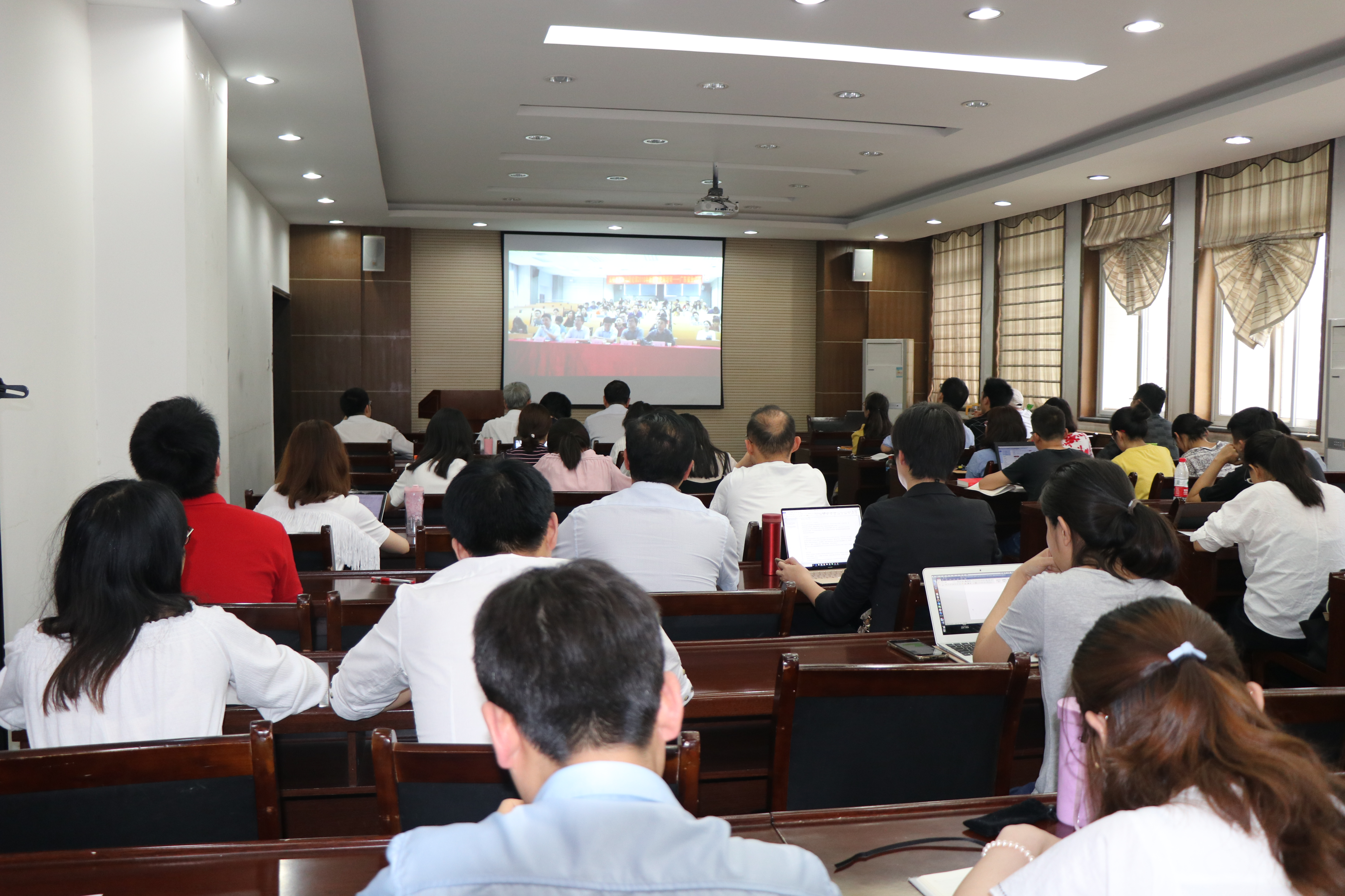 305报告厅与全院教师一同参加了教育部在京召开全国高校思想政治理论课2018年版教材使用培训班开班式的同步直播活动。