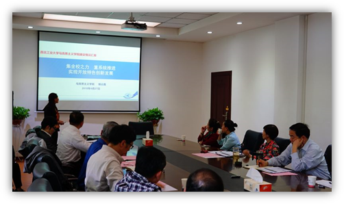 院长杨云霞分别就两个学院工作进行了汇报,在有针对性的反映两个学院各自具体工作和建设成效的基础上,着重强调了人才引进、扩大当前教师队伍体量、培养挖掘学科带头人对学院未来发展的至关重要性。鲁卫平汇报了学院党委工作。与会人员进行了补充发言。