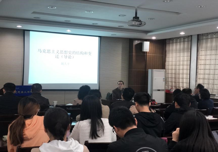 胡大平教授第一个专题“马克思主义思想史的结构和变迁(导论)”,从“马克思主义理论构成及其社会科学研究一般框架的对照”和“马克思主义历史叙事框架”,“马克思主义历史发展的断代”视角对马克思主义的形成、拓展、双元对立、增生扩散或多样化时期以及马克思主义在世界的发展和传播进行了探讨。第二个专题“从西方马克思主义到马克思主义”立足于马克思主义的主旨、理论构成、基本立场和方法宏观地透视20世纪西方马克思主义的逻辑发展——其旨趣、主题的历史变迁。第三个专题“何为马克思主义”从“马克思主义是一个科学(思想史)对象”为逻辑,探讨了马克思主义在当代的历史使命和进一步需要思考的时代课题。在报告中,胡大平教授多次与师生进行了对话,并强调一定要“回到马克思”——多读马克思的经典著作,运用马克思的方法论分析问题,才能更好的理解和学习马克思主义理论。