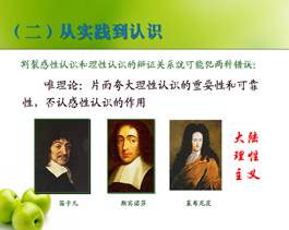 理工科学生实际,李军时老师把培养学生的科学精神作为首要目标。在讲授实践与认识一章,通过分析英国经验主义与大陆理性主义在人类认识原理上两种观点的斗争以及马克思主义哲学对人类认识原理的科学揭示,培养塑造学生的科学质疑精神。与此同时,针对新时代大学生将要担当的国家富强、民族振兴的重任,特别是调教漫画