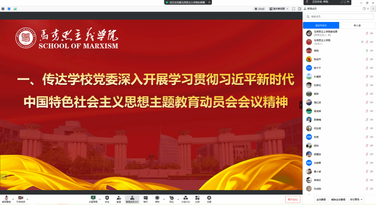 学院党委副书记李刚传达学习了学校学习贯彻习近平新时代中国特色社会主义思想主题教育动员大会精神,组织学习了学校主题教育实施方案,并对学院开展主题教育进行动员部署。他表示,学院全体教职工要进一步提高政治站位,要依据总体要求推动落实,要围绕根本任务推动落实,要盯紧具体目标推动落实,要贯通重点措施推动落实,高标准高质量完成主题教育各项任务。