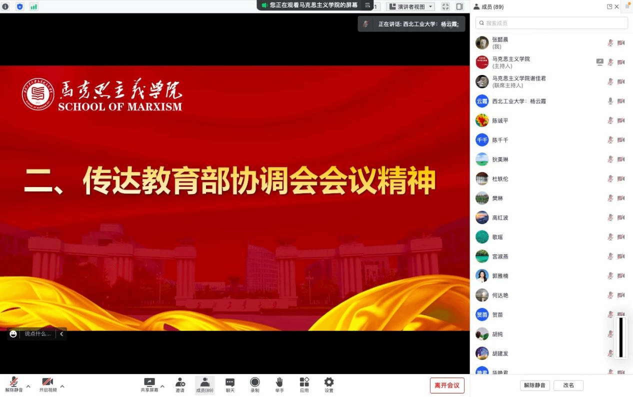 会议最后,杨云霞作总结,她要求全体思政课教师要不断提升自身素质,深耕思政课教育教学,坚持不懈用习近平新时代中国特色社会主义思想和党的二十大精神凝心铸魂,不断凝练和弘扬“总师文化”,培养红专人才,为学校“双一流”建设贡献更多智慧和力量。