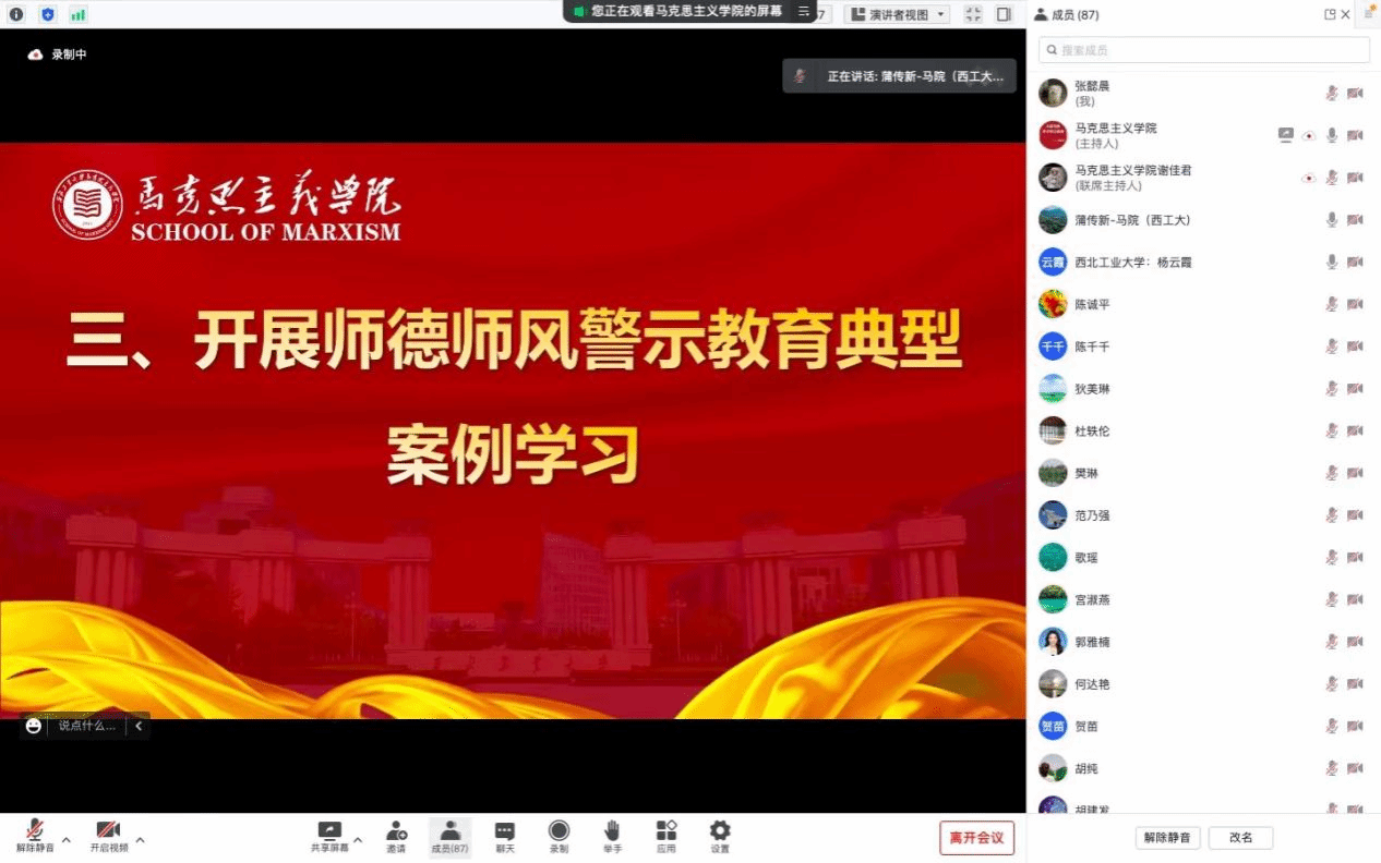 蒲传新带领全体教职工共同学习师德师风警示教育典型案例。他首先领学了省教育厅通报的6起违反教师准则的案例,结合师德失范的6个典型案例,启示广大教师要引以为戒,牢固树立底线意识,切实认清新时代教师担负的使命任务,扎实掌握《新时代高校教师职业行为十项准则》等有关规定,认真落实相关要求,强化立德树人、以德为先的观念,做新时代高尚师德的践行者和引领者。他强调,师德师风建设是教师队伍建设的“第一要求”,师德师风是教师评价的“第一标准”,要严格制度规定,强化日常教育督导;争做“四有”好老师,着力培养德智体美劳全面发展的社会主义建设者和接班人。