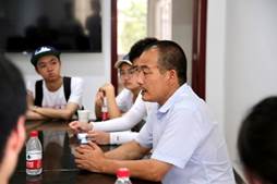 图为金米村村支书为实践队队员们讲解村集体经济发展情况