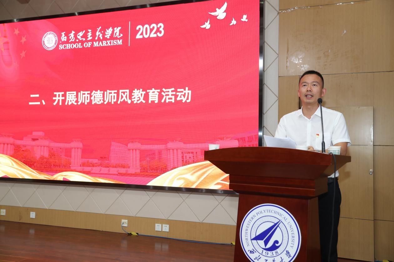 学院党委书记蒲传新将本单位师德集中学习教育工作的部署安排传达至全院教职工。他首先带领全体教职工认真学习习近平总书记关于教师队伍建设的重要指示批示精神和师德师风的重要论述;通报了《教育部关于在教育系统开展师德集中学习教育的通知》《教育部教师工作司关于报送专项整治“清朗净化”行动有关情况的通知》《教育部教师工作司关于在国家智慧教育公共服务平台开展“师德集中学习教育”专题教育的通知》。随后,蒲传新围绕《新时代高校教师职业行为十项准则》和“师德负面清单”开展宣讲、案例解读。以公开曝光的违反教师职业行为十项准则典型案例为反面教材,开展了师德警示教育和教师法治教育,引导全体教职工以案为鉴,做到警钟长鸣。