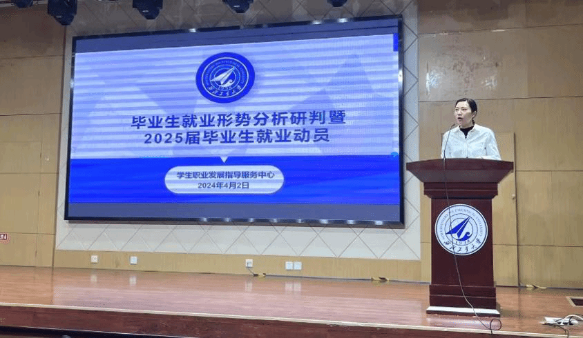 学生职业发展指导中心朱莉老师主讲,学院党委副书记李刚主持,2025届全体毕业生参加。