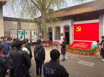 “我志愿加入中国共产党……”鲜红的党旗擎起一颗颗赤诚的心,铮铮誓词凝聚起不忘初心的信念与力量,在讲解员的带领下,师生们重温入党誓词,在党旗下接受精神的洗礼。