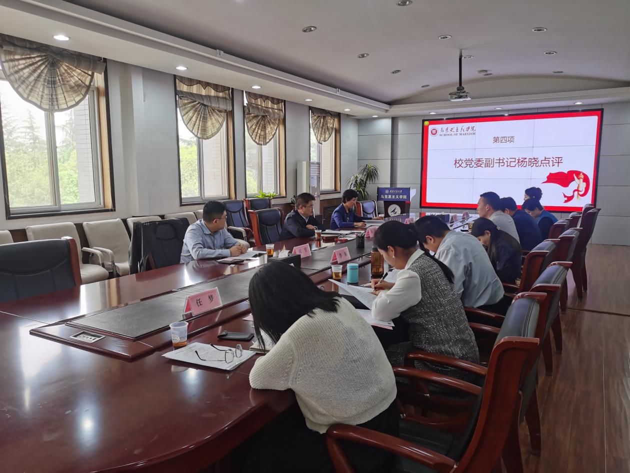 党委的反馈意见》提出的整改问题,切实加强学院马克思主义理论学科建设、思政课建设,加大研究生培养和人才引进力度;二是工作中要讲究方式方法,系统推进,重点突破,完善内部治理体系,确保工作出实效;三是推动全面从严治党向纵深发展,学院领导要结合分管领域的工作认真查找管理上的漏洞,结合学校目标责任制,锚定学校“127”发展目标,对标一流,为实现学院高质量发展凝心聚力,砥砺前行。