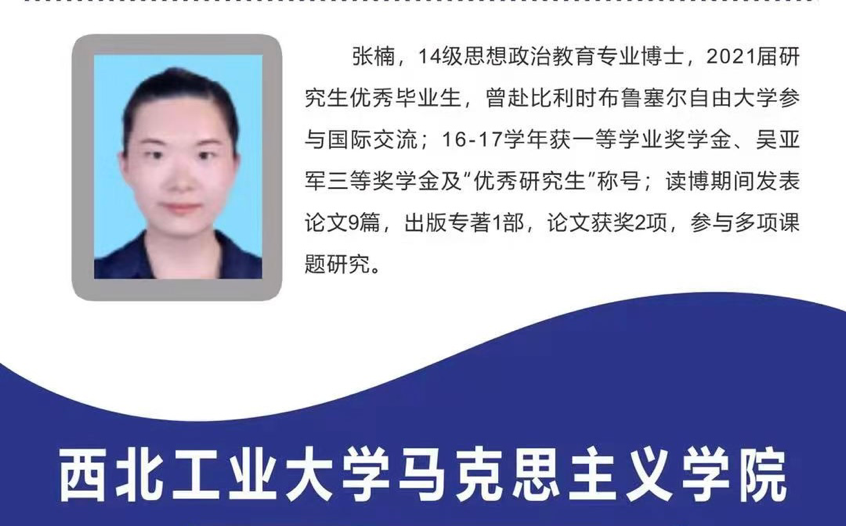 第三位分享的学姐是2014级思想政治教育专业的博士研究生张楠,目前就职于西北农林科技大学。会上,张楠为同学们分享了自己的高校就业经验,她谈到了入职高校的优势,还结合自身工作经历向同学们详细介绍了入职高校的方向及岗位,并围绕如何做好思政课教师做了进一步阐述。回首自己在西工大读博的六年时光,张楠给博士生提出了几点建议,一是要尽早开始大量阅读文献,了解专业前沿,确定研究方向;二是积极参与学校交流项目,丰富学习历经;三是参与课题研究和学术交流,认真完成学习任务;四是既然选择了读博就要坚持到底。