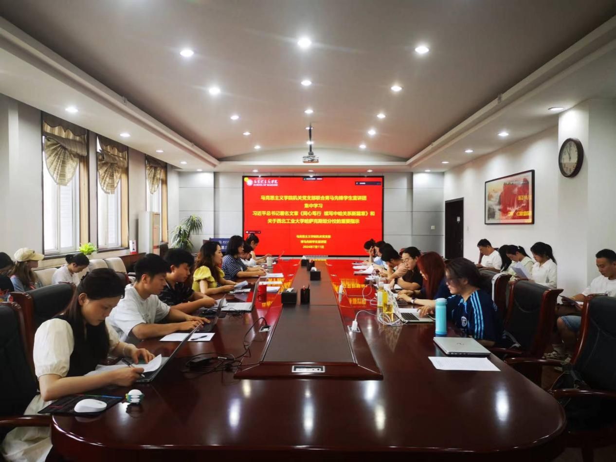 机关党支部联合青马先锋学生宣讲团在学院208会议室深入开展理论研学活动。