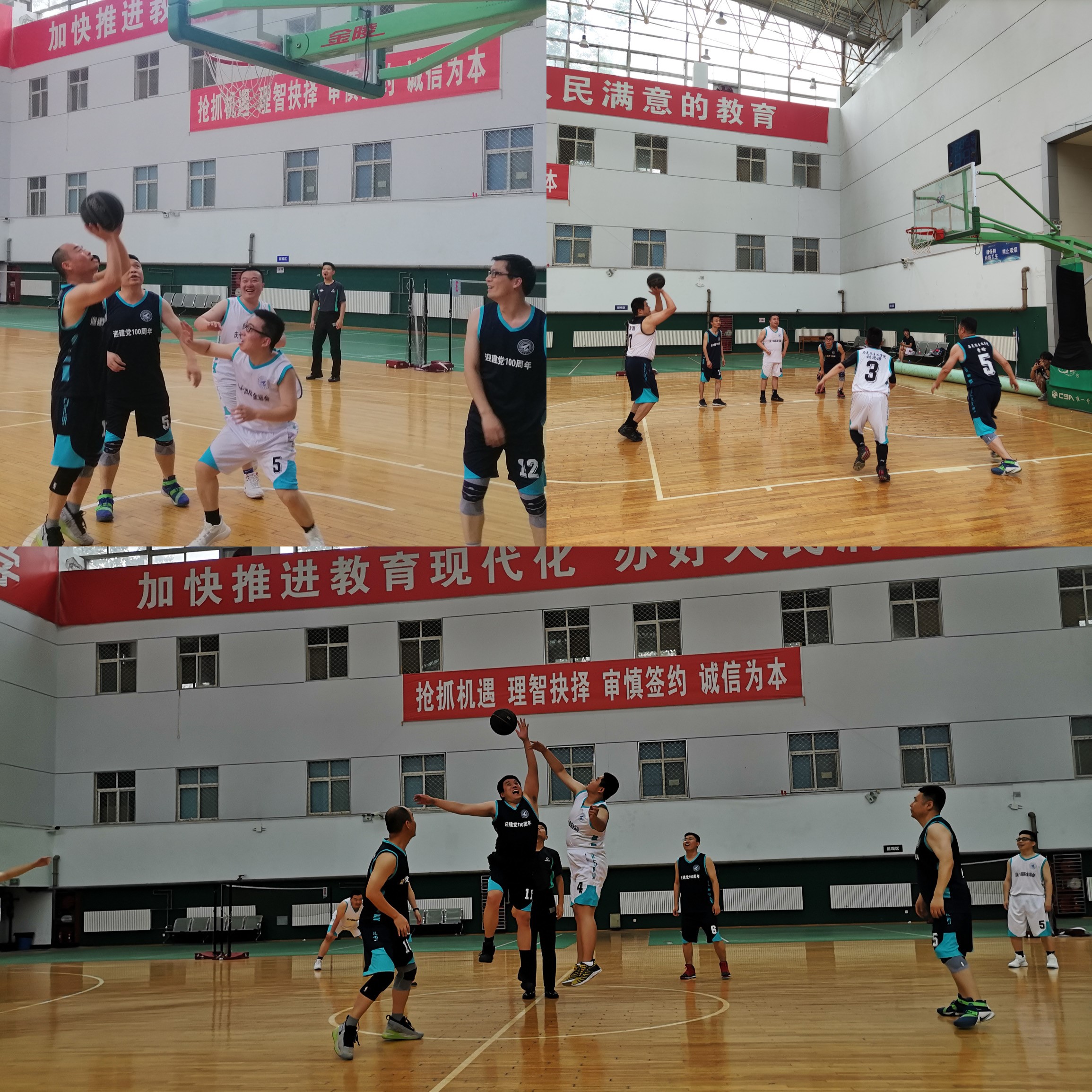 在友谊校区翱翔体育馆举办“迎建党100周年,庆十四届全运会”师生篮球赛。