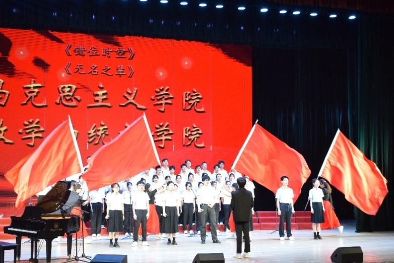 与数学与统计学院师生联合组成的合唱队,以精心编排的节目《错位时空》与《无名之辈》惊艳亮相,展现了昂扬向上的精神风貌,赢得现场热烈反响。