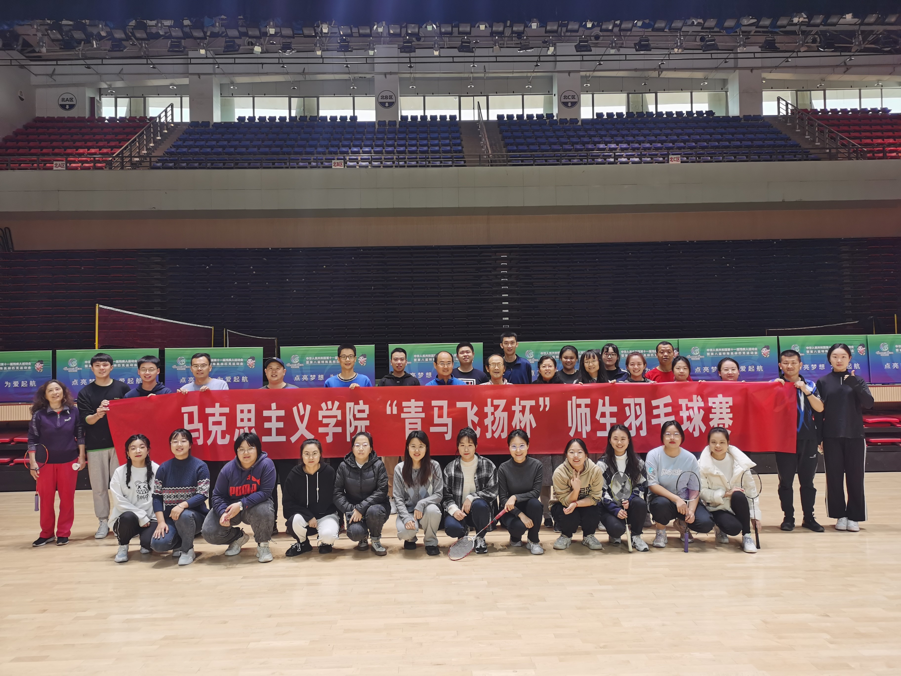 工会、研究生会共同组织的“青马飞扬杯”师生羽毛球赛在翱翔体育馆顺利举行,学院师生齐聚一堂,展开比赛。
