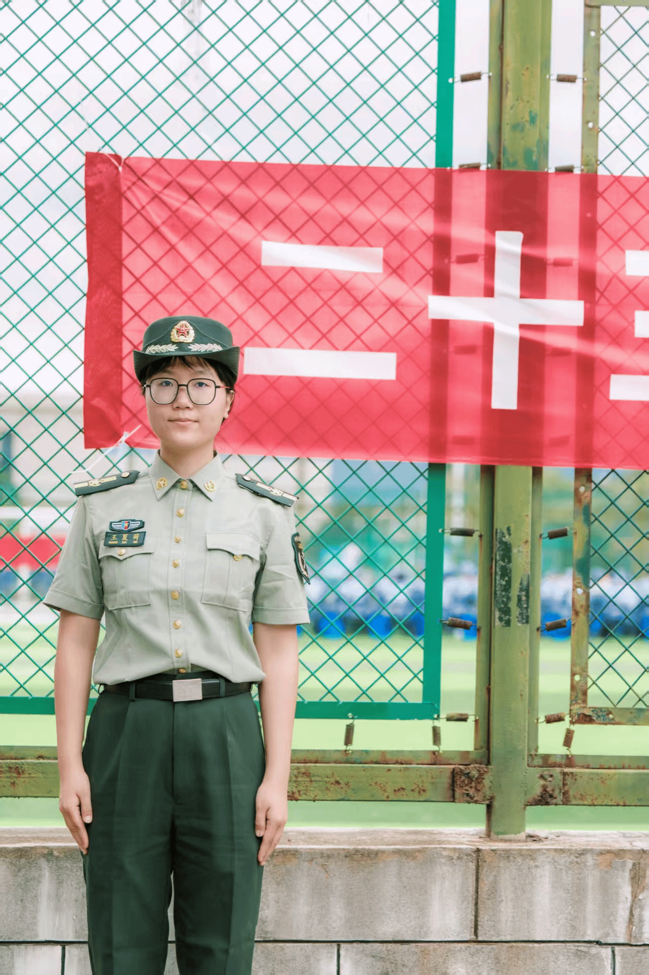 丁嘉欣,学院2025届硕士毕业生,目前在微电子学院任职,此次担任军训师一团7连指导员
