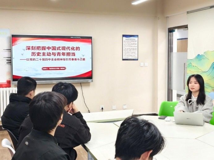 青马先锋学生宣讲团成员刘佳彤、杨思羽先后围绕党的二十届四中全会精神开展理论宣讲,呼吁青年学子运用专业知识为国家和社会做出贡献,成长为有理想、敢担当、能吃苦、肯奋斗的新时代好青年。理论宣讲后,在场学生纷纷表示,作为西工大学子,我们要以马克思主义为思想引领,用先进理论指导学术研究,为学校“一十百千”目标的实现贡献青春力量。”