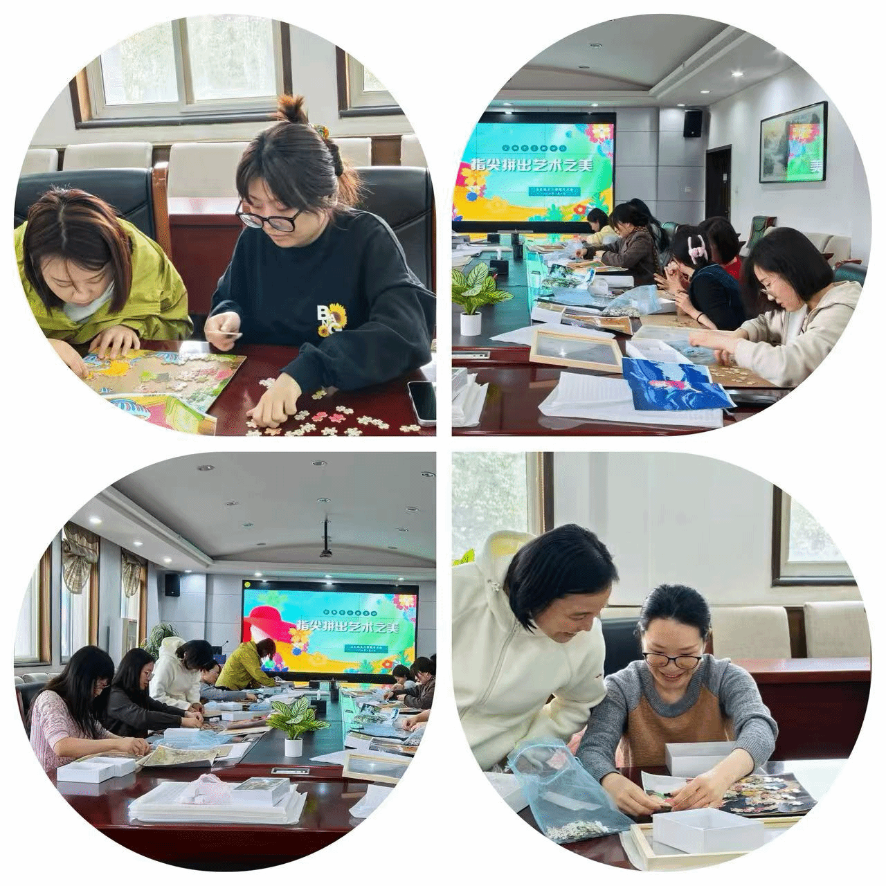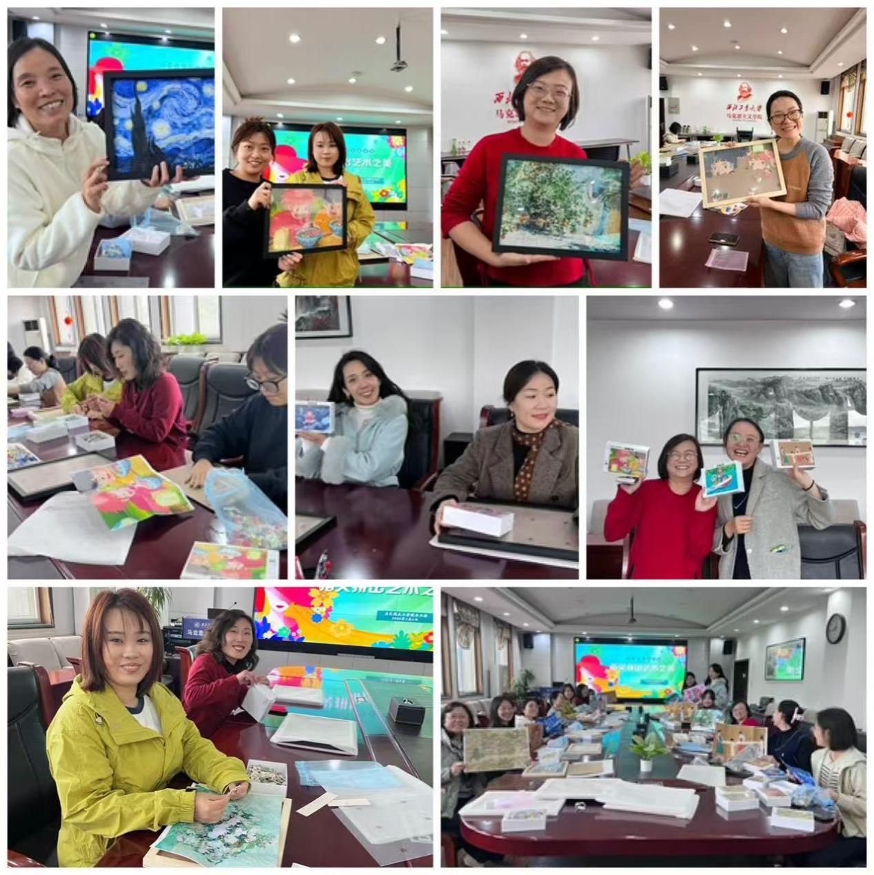 的工会之家化身为一间艺术气息浓郁的“拼图工坊”。为庆祝第116个“三八”国际妇女节,学院工会精心策划的“指尖拼出艺术之美”世界名画与中华传世名画拼图比赛交流活动在这里温馨举行。