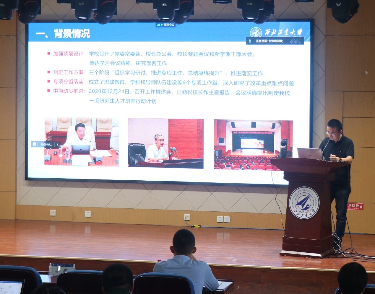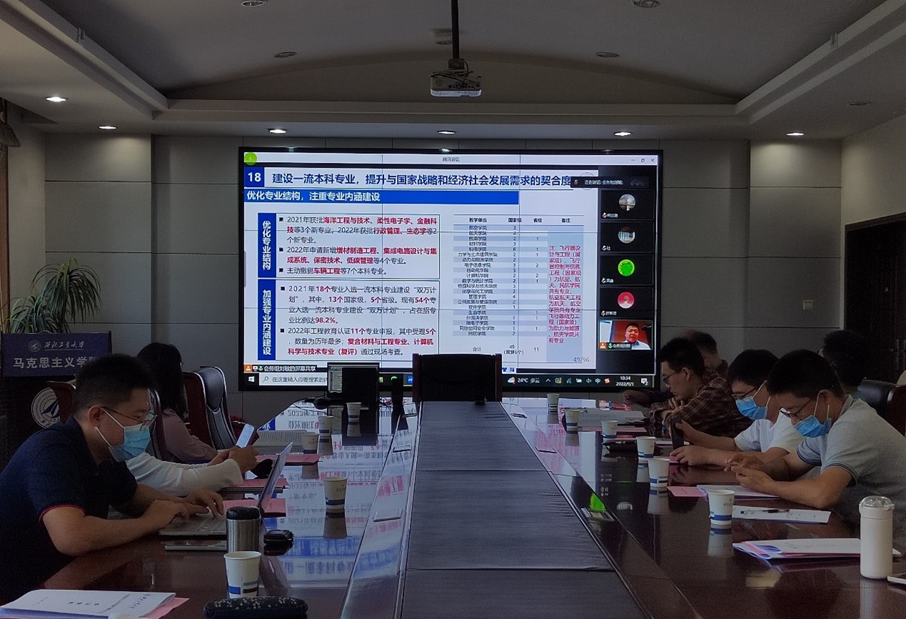 赵世杰宣讲了《一流研究生人才培养行动计划》。他指出全力抓好新时代研究生教育高质量发展的核心任务:一是深化研究生思想政治教育,落实立德树人根本任务;二是不断优化学科布局,建设特色学科生态体系;三是加强导师队伍建设,落实导师岗位职责,提升教书育人本领;四是针对重点领域,分类培养国家急需高层次人才;五是强化质量保障体系建设,牢固树立研究生教育质量观。他指出,学校将思想政治教育摆在研究生培养的首位,在加快形成思政课程、课程思政、导学思政为核心的研究生思政育人新格局,在这一方面,马院地位凸显、任务艰巨,马院全体教职工要进一步提高政治站位,勤思考、善作为,确保研究生培养工作精准到位。