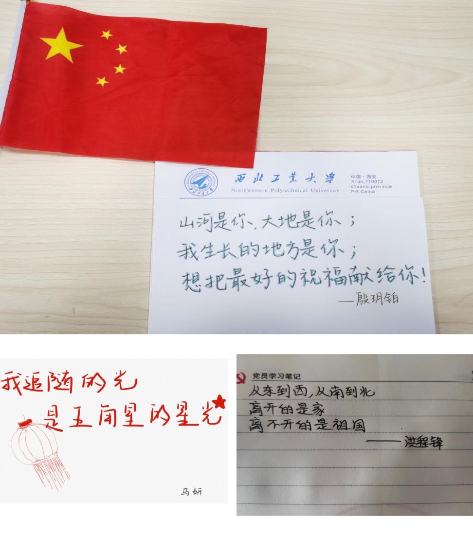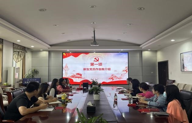首先,新生党员依次进行自我介绍,党支部书记王慧新同志代表支部欢迎各位新生党员的加入。有一种颜色,叫“中国红”;有一种骄傲,叫“五星红旗”;有一种表白,叫“我爱你中国”。在举国欢庆中华人民共和国成立73周年之际,全体党员手举五星红旗,歌唱对祖国的祝福。