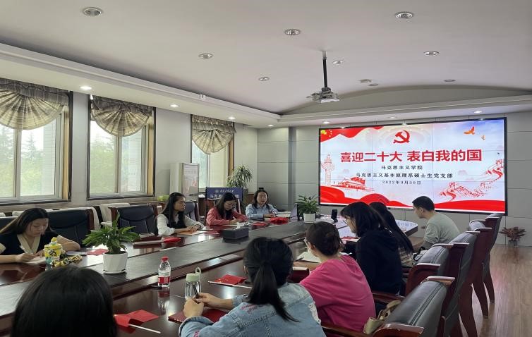马克思主义基本原理系硕士生党支部在学院208会议室开展“喜迎党的二十大,表白我的祖国母亲”主题党日活动。会议由党支部书记王慧新主持,全体党员及新生党员参加。