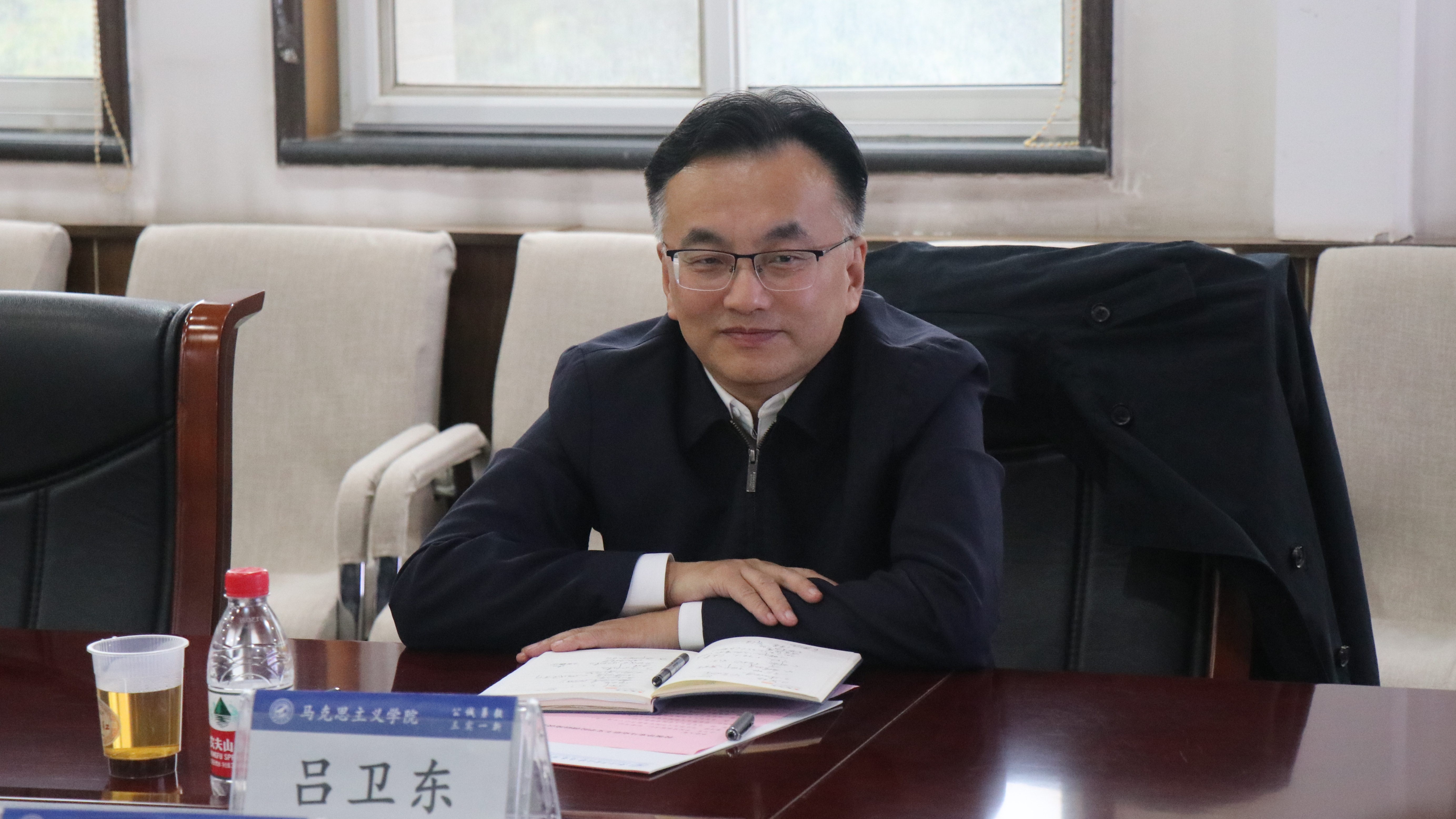 党委副书记(主持工作)蒲传新、党委副书记李刚、马克思主义中国化研究系主任高旭红、思想与政治教育系主任鲁杰、德法与形势政策系主任高宝营、院办主任郭雅楠、公共课教学秘书张笑男等参加了会议。