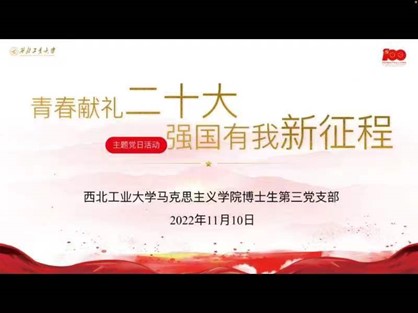 博士生第三党支部开展了“献礼党的二十大﹒强国有我新征程”主题党日活动,会议由党支部书记黄跞昀同志主持,博士生第三党支部全体党员参加了此次会议。