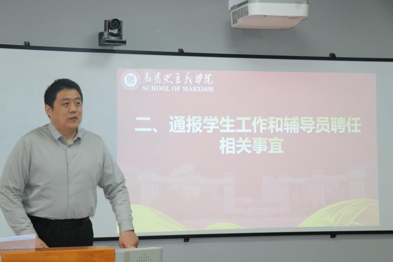 On the afternoon of 1 March, the School of Marxism held its annual meeting for the spring semester of 2024 was held in the XB301 classroom. All the faculty members attended the meeting. The meeting was presided over by Pu Chuanxin, Secretary of the Party Committee of the School.