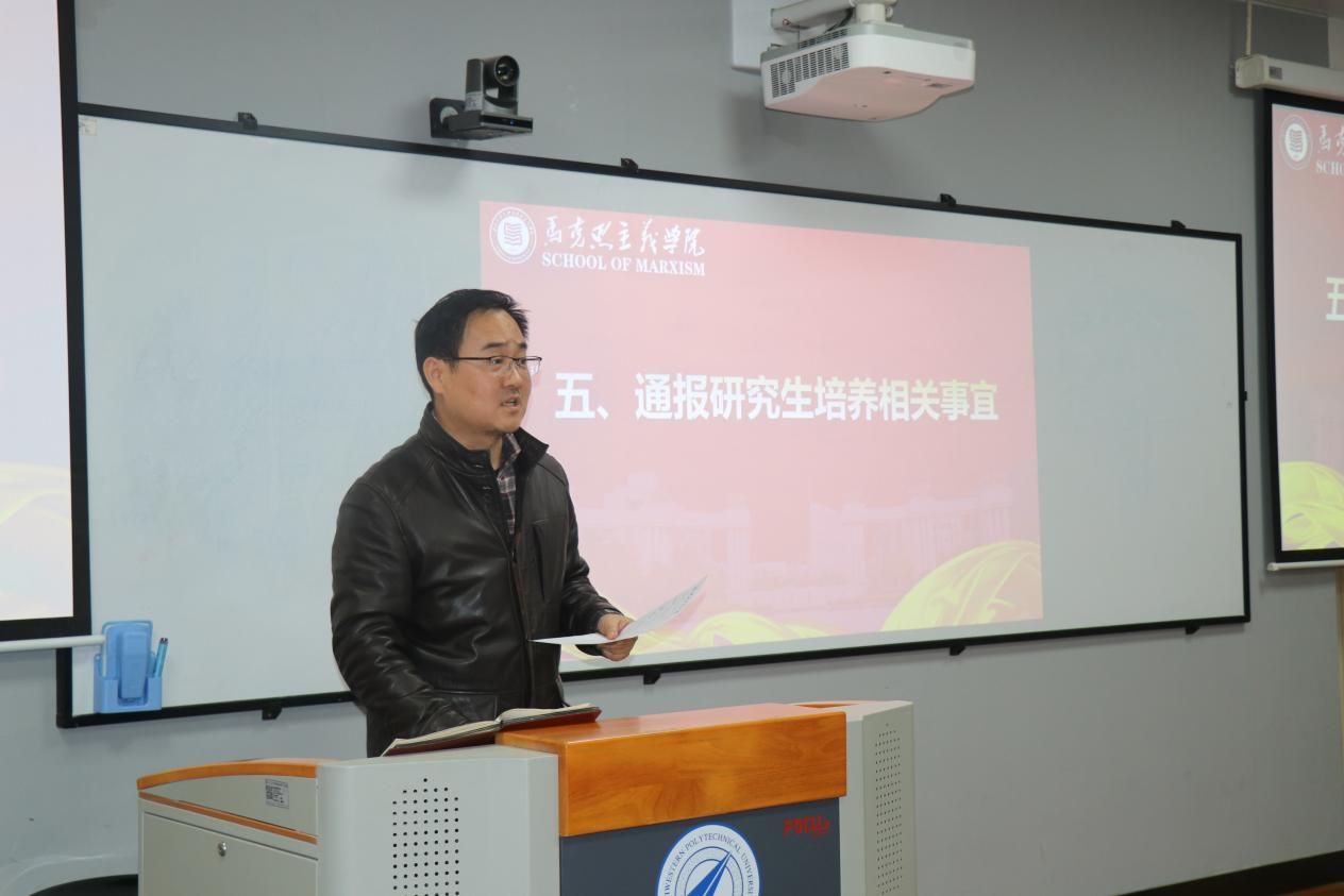 Zhang Yunlong, vice president, informed the postgraduate-related matters. He pointed out that around the "127" core indicators, in terms of enrollment, the School should further improve the quality of graduate student sources, all staff should do a good job of enrollment publicity; in terms of tutor enrollment plan enrollment targets, the distribution of student sources is linked to the output of teaching and scientific research results; in terms of discipline construction, it is necessary to set up a sense of excellence and awareness of excellence; In talent cultivation, tutors should pay close attention to the quality of dissertations, cultivate superior masters, and actively encourage and guide students to participate in all kinds of competitions.