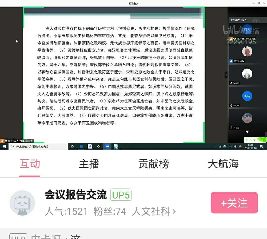 1500多名学生通过腾讯会议平台或者B站直播室,同步观看、参与了本次报告。报告会由近现代史系汪永平主任主持。