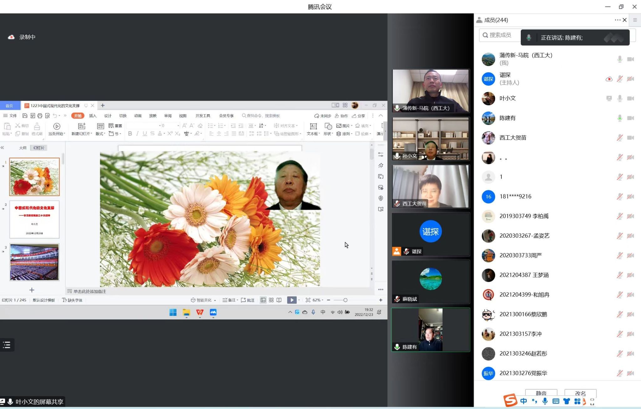 叶小文主任从中国式现代化的特点引入,主要围绕以下两个层面展开:文化实力与文化定力。首先带领与会师生们进行了历史逻辑和脉络的梳理,详细回顾了中国现代化道路的提出与实施。接着他详细分析了西方现代化道路的弊端,并强调中国式现代化是一个持续而协调发展的、势不可挡的现代化;是一个和平发展、合作共赢,有助于促进解决共同面临难题、有助于推动构建人类命运共同体的现代化。