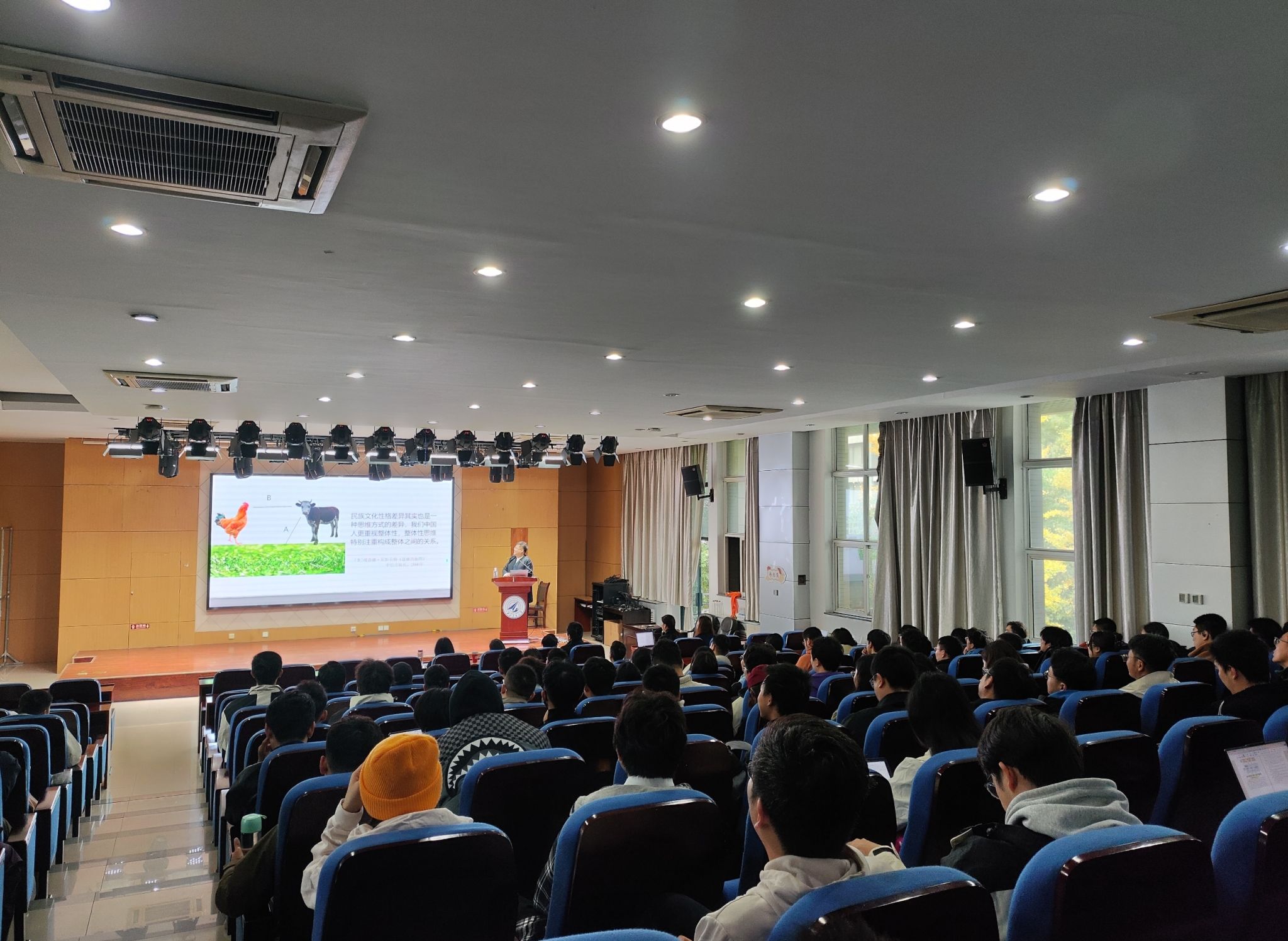思政课教师、艺术教育中心教师以及百余位学生参加。讲座由研究生院、艺术教育中心、党委教师工作部主办,调教漫画