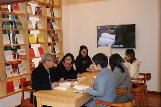 中午稍作休息,我们便驱车赶往延安学习书院参观学习。首先,我们自行参观了馆藏丰富、主题鲜明和设施先进的图书馆。在图书馆中,我支部同志们坐在一起,鲁卫平书记为年轻的同志们讲起了党课。他生动地讲述了自己工作30多年来,不同时期来到延安的学习故事,以及这么多年延安城区人民生活水平的巨大提升,城区建设的焕然一新,尤其是现在新区的建设,让我们年轻一代一来来就感受到了革命圣地的生机勃勃。这次在延安学习书院图书馆开展的支部党课,让年轻党员们意犹未尽。