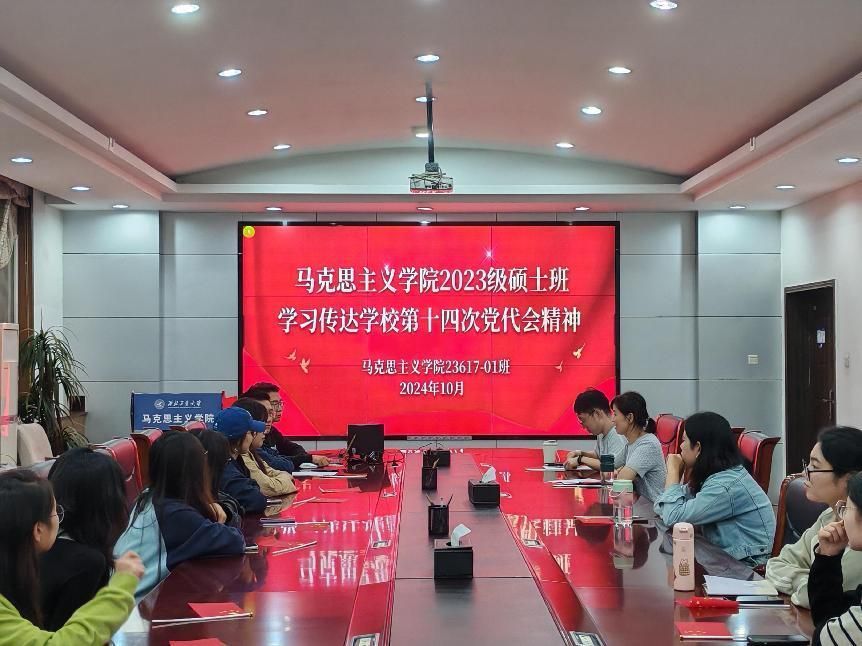 2023级硕士班在学院208会议室举办“请党放心 强国有我”主题班会暨主题团日活动。本次活动由2023级硕士班班长陈宗超主持,辅导员王换、班主任吕焰受邀参加。