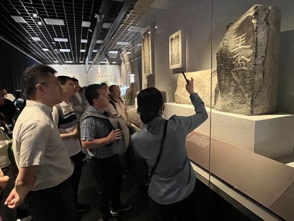 随后,大家来到古汉台——汉中市博物馆参观学习。这里是习近平总书记2023年7月考察汉中的首站。在讲解员的带领下,同学们细致参观了望江楼、石鼓亭等历史建筑,仔细观摩“石门十三品”等国家一级文物。博士生第一支部韩瑞欣同志带领大家回顾了两年前习近平总书记参观的场景,同志们循着总书记的足迹,重温他“守护好中华文脉,并让文物活起来,扩大中华文化影响力”的殷殷嘱托,更加深刻地理解了“两个结合”的重要意义。