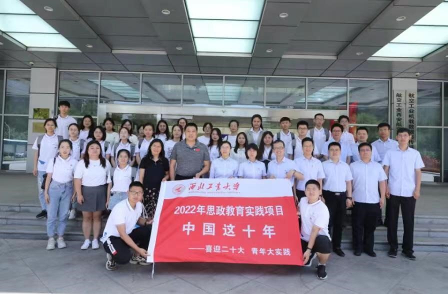 (图为“共同富裕和大学生高质量就业”实践队成员在西安航空计算机研究所门口合影)
