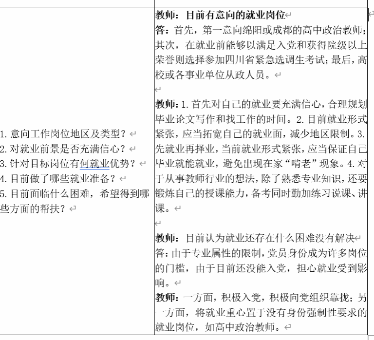 研职有方,岗位“精准推”。毕业生和帮扶教师座谈结束后,辅导员收集了每个学生的求职意向,发挥“宣传员”作用,采取“一人一策”,并建立微信群,依托全媒体平台,及时筛选、整合“国家24365大学生就业服务平台”、“调教漫画