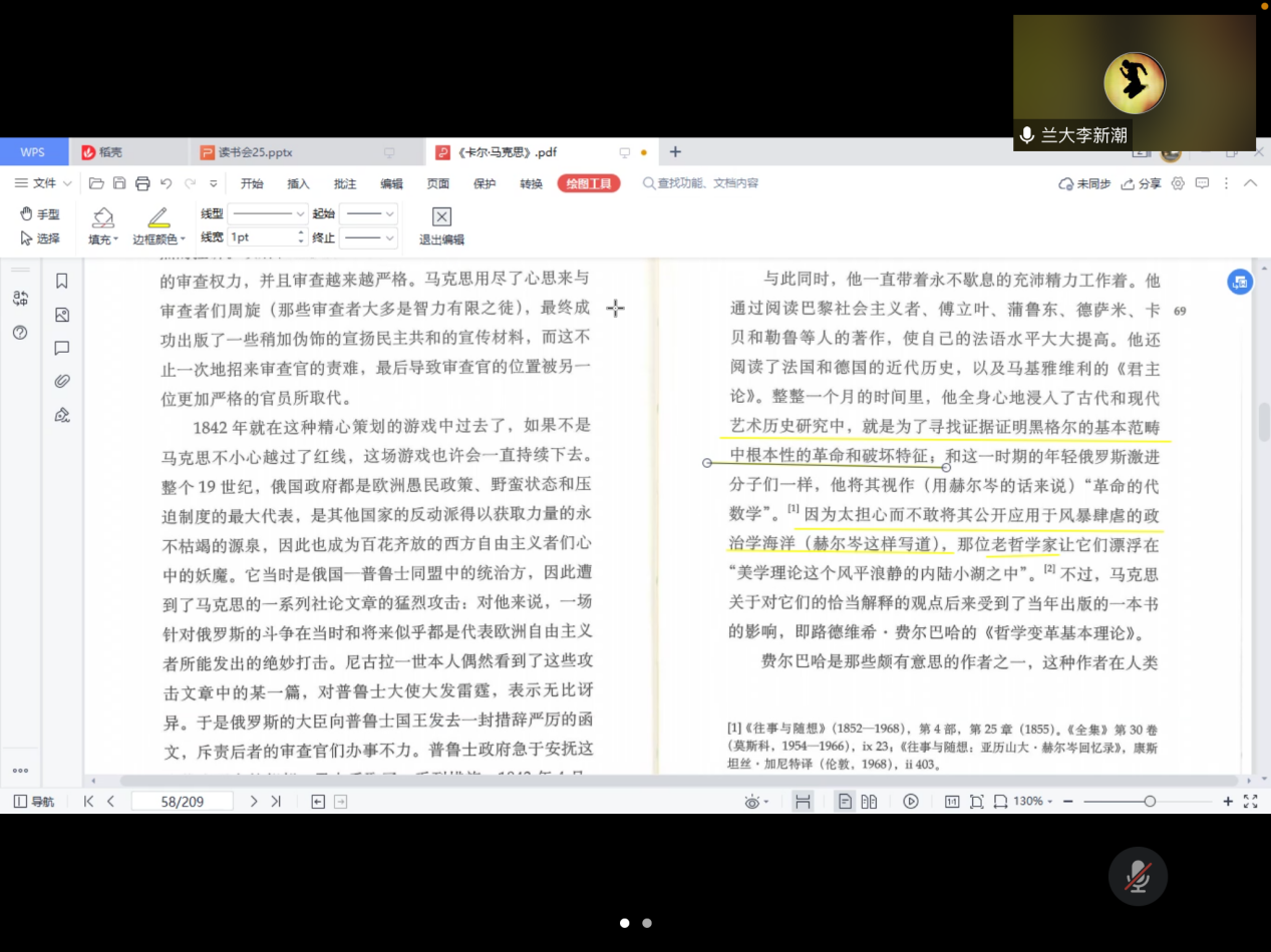 李新潮老师与同学们一起阅读以赛亚·伯林所著《卡尔·马克思:生平与环境》的第四章的内容,调教漫画