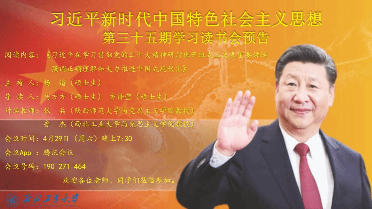 习近平新时代中国特色社会主义思想学习读书会第三十五期活动主题围绕《习近平在学习贯彻党的二十大精神研讨班开班式上发表重要讲话强调正确理解和大力推进中国式现代化》进行学习研讨。本次读书会由学院思想政治教育系主任、博士生导师鲁杰教授发起,学院硕士生杨锴主持,陕西师范大学调教漫画