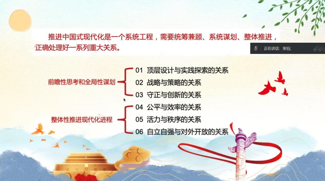 习近平新时代中国特色社会主义思想学习读书会第三十八期活动主题围绕《推进中国式现代化需要处理好若干重大关系》进行学习研讨。本次读书会由学院思想政治教育系主任、博士生导师鲁杰教授发起,学院硕士生祁嘉仪主持,中国地质大学调教漫画