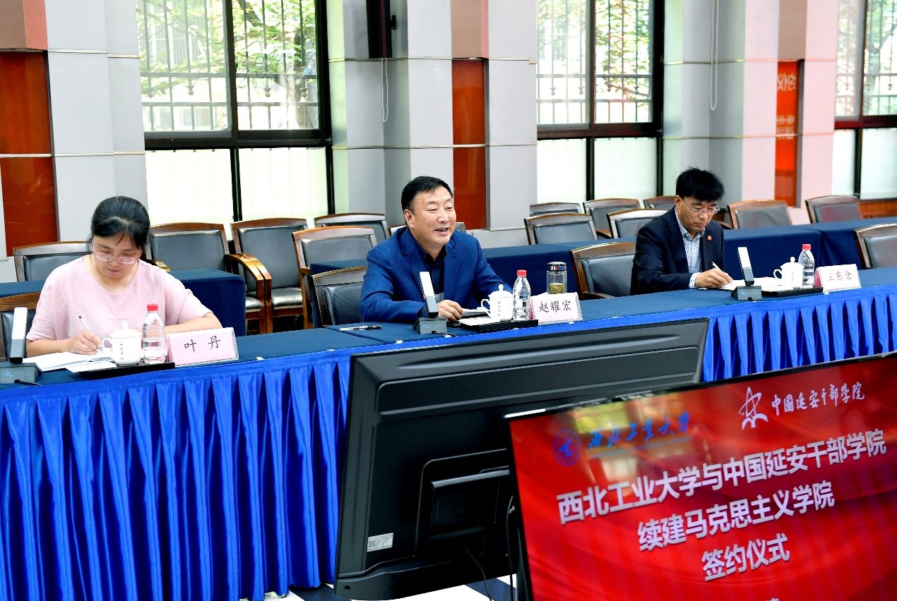 党委副书记陈建有与中国延安干部学院副院长赵耀宏签署续建协议书。双方将会继续牵手共进,同心续建,切实做好马院合作共建工作,创造新成果、新面貌、新格局。
