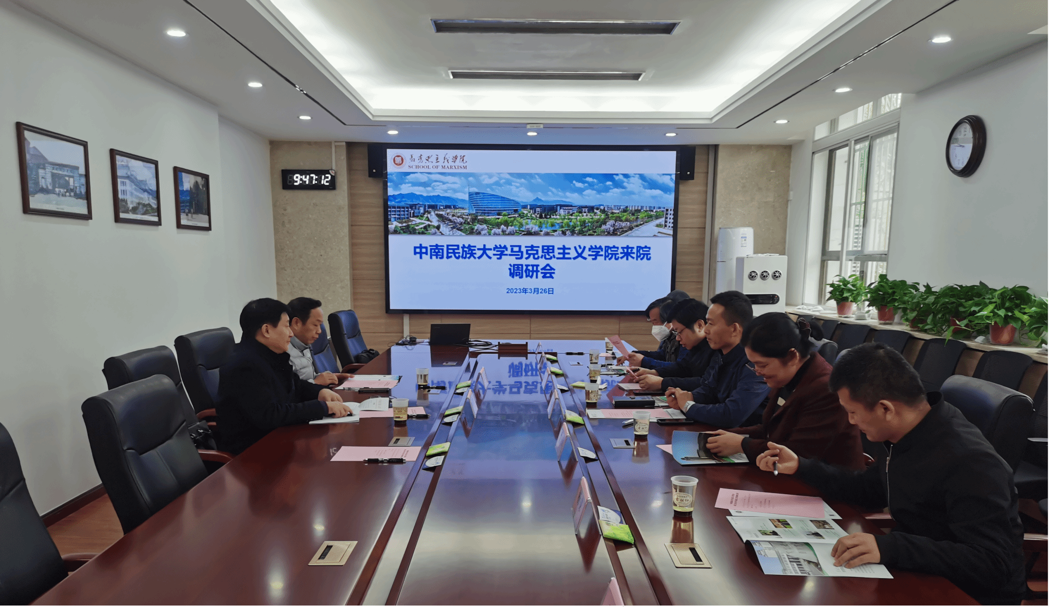 马院的热情接待表示由衷感谢,通过学院基本情况介绍环节对学院了解详细,收获颇丰;他介绍了中南民族大学马院的基本情况,表示此次来访希望能学习学院学科建设、思政课教学改革经验,并开展博士师资招聘等。