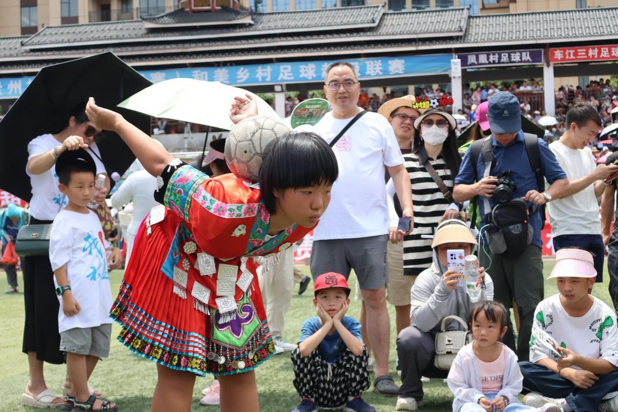 在热火朝天的7月,贵州榕江的”村超”也在如火如荼地进行中。“村超”全名为贵州榕江(三宝侗寨)和美乡村足球超级联赛,这是一场特别而又盛大的足球赛事,参赛球员来自不同民族,不同年龄段、有着不同职业:有摊贩、公务员、还有教师;在中场休息穿插非遗表演,侗族大歌、苗族芦笙舞等。赛场上有着丰富多彩的民族文化,气氛极其热烈。“村超”不仅是一场足球盛事的狂欢,同时也是振兴乡村经济的强大动力。