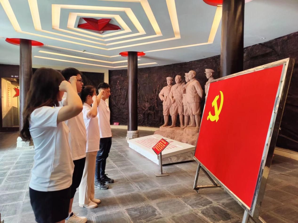 随后,学生党员在榕江红七军历史陈列馆内面对党旗,共同重温入党誓词,砥砺前进初心。