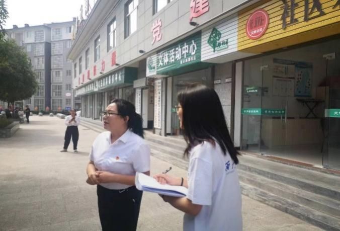 图为实践队员与汉阴县紫云郡社区党支部书记访谈