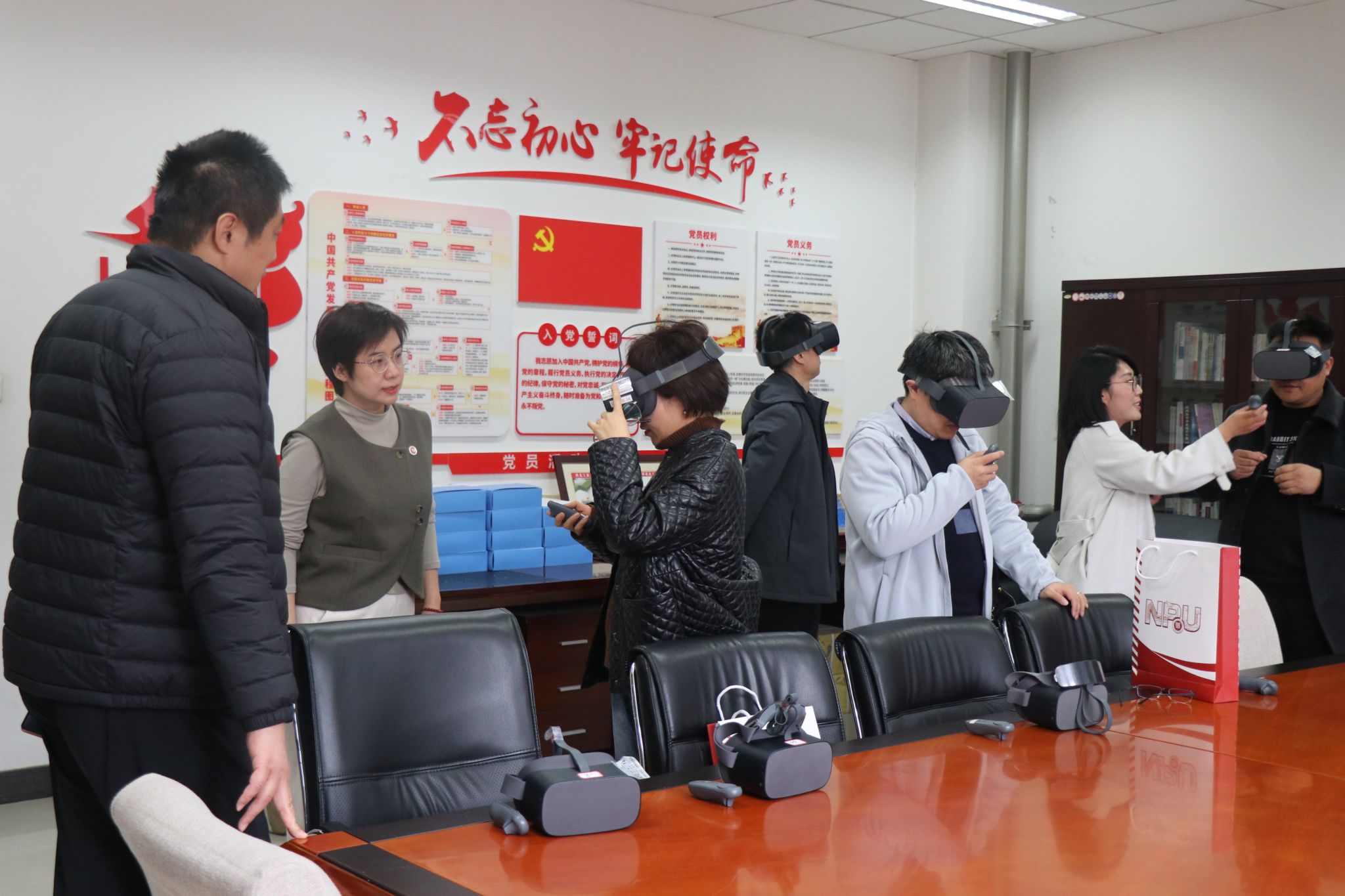 梁院长一行在学院教师陪同下参观了学院楼宇文化,并在学院党建VR活动室进行了红色之旅VR全景漫游体验和互动交流。双方表示要进一步加强合作交流,在人才共育、学科建设、平台建设等方面互相学习借鉴,实现资源共建共享。