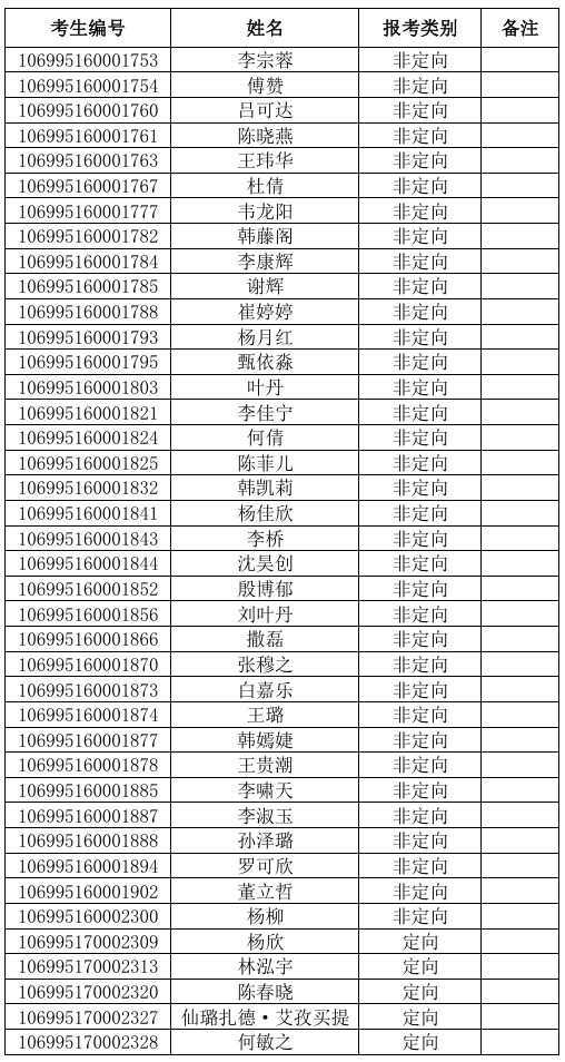 经专业知识笔试,按照招生年度学校划拨指标情况变化,招生计划名额剩余30个,确定进入面试考生名单40人如下,请考生按时参加6月4日综合素质面试。