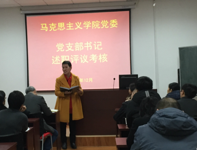 马院直属支部书记高旭红、经济学系支部书记袁晓军、法学系支部书记李娜、公共管理系支部书记来爽、机关支部书记曹良玉及15613-3支部书记王成、2017级硕士第二支部书记王乐依次从2017年以来支部书记履职情况、支部开展的工作、支部工作中存在的主要问题和下一步的工作思路进行了现场述职,每位党支部书记除了完成了2017年校院级党建工作的规定动作外,还都结合专业特点开展了支部党建特色活动,支部亮点工作,并对工作中存在的问题进行了认真的查找,对下一步的工作思路进行了梳理,提出了整改措施。
