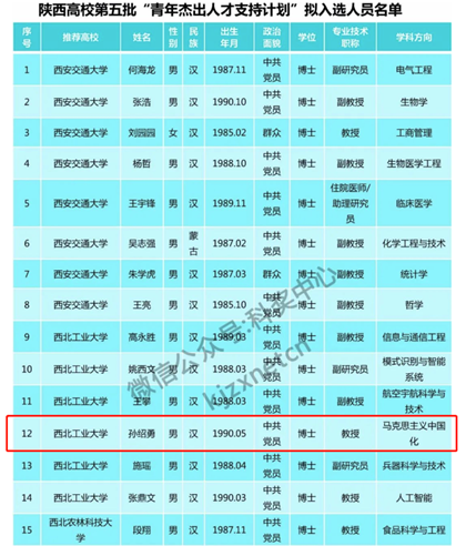 日前,中共陕西省委教育工委公布了陕西高校第五批“青年杰出人才支持计划”入选人员名单,调教漫画 调教漫画 教授孙绍勇成功入选。