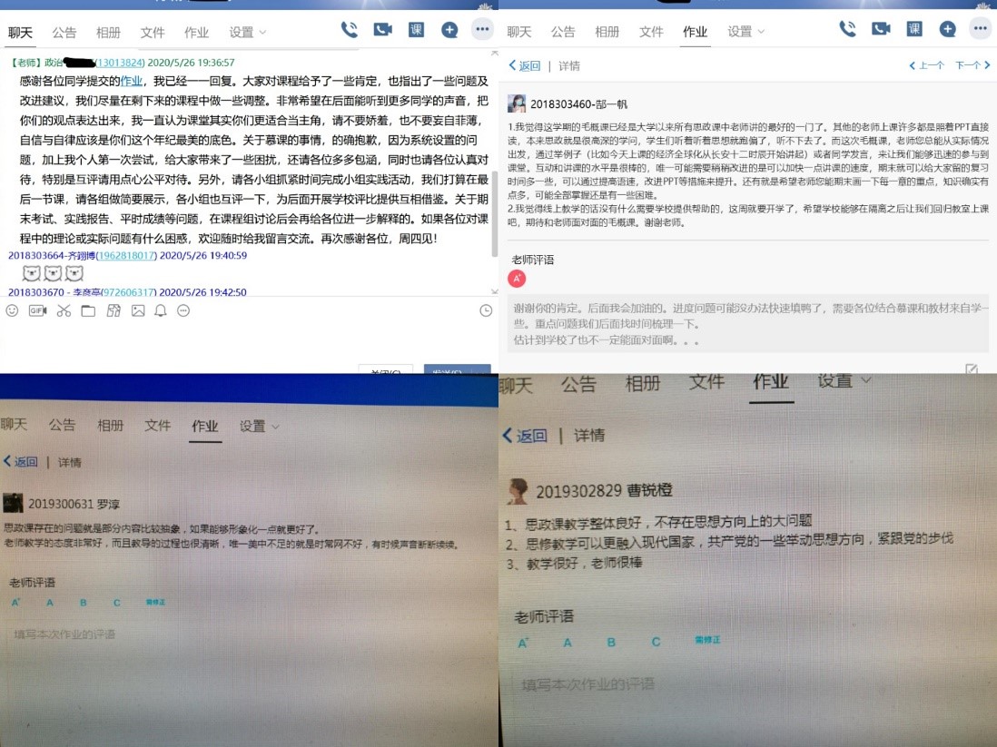 根据学校教务处要求,在全院开展本科质量保障全员自查工作。学院所有任课老师积极配合,逐项自查本学期各自教学日历、教案、教学大纲等是否规范,并且针对本科思政课存在的教学问题和整改措施和同学们展开了积极交流,学生们反响热烈,积极参与讨论,为本科思政课教学改革建言献策。