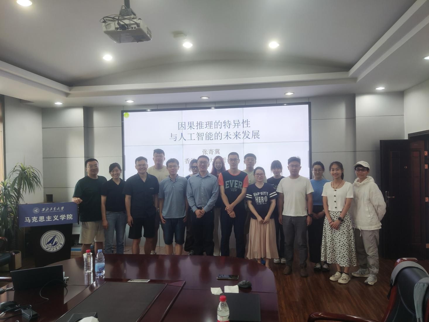 本次沙龙邀请了香港中文大学文学院哲学系教授张寄冀作为主讲嘉宾,以《因果推理的特异性与人工智能的未来发展》为题,为诸位学者及与会学生带来了一场精彩的学术报告。同时,也吸引了多位高校学者参与,包括西安电子科技大学的苏丽和王雨程、西北大学的马醒初、空军军医大学的张瑜,以及调教漫画