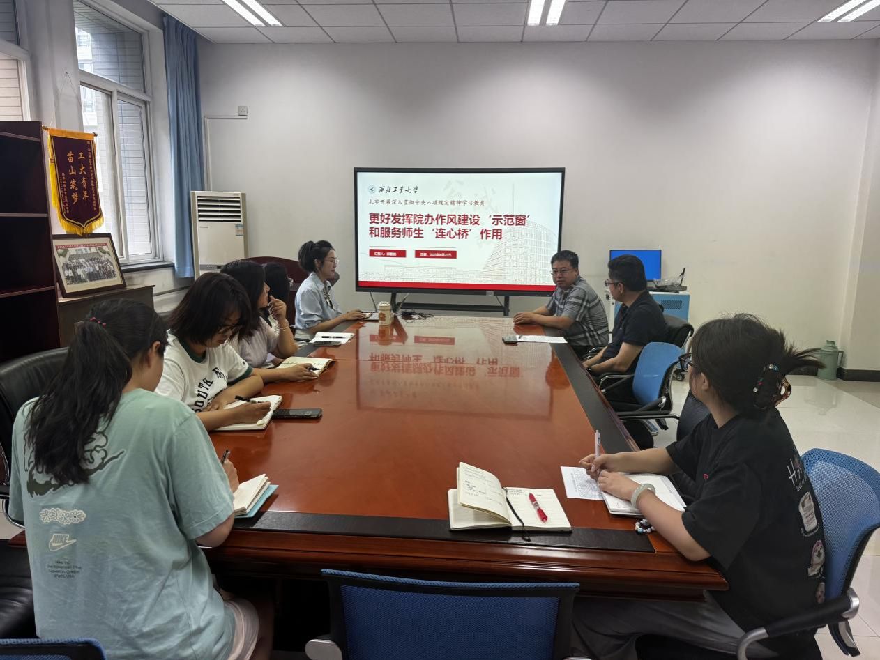 机关党支部书记郭雅楠以《更好发挥院办作风建设‘示范窗’和服务师生‘连心桥’作用》为题在学院楼209党员活动室,为学院机关党支部讲授深入贯彻中央八项规定精神学习教育专题党课。